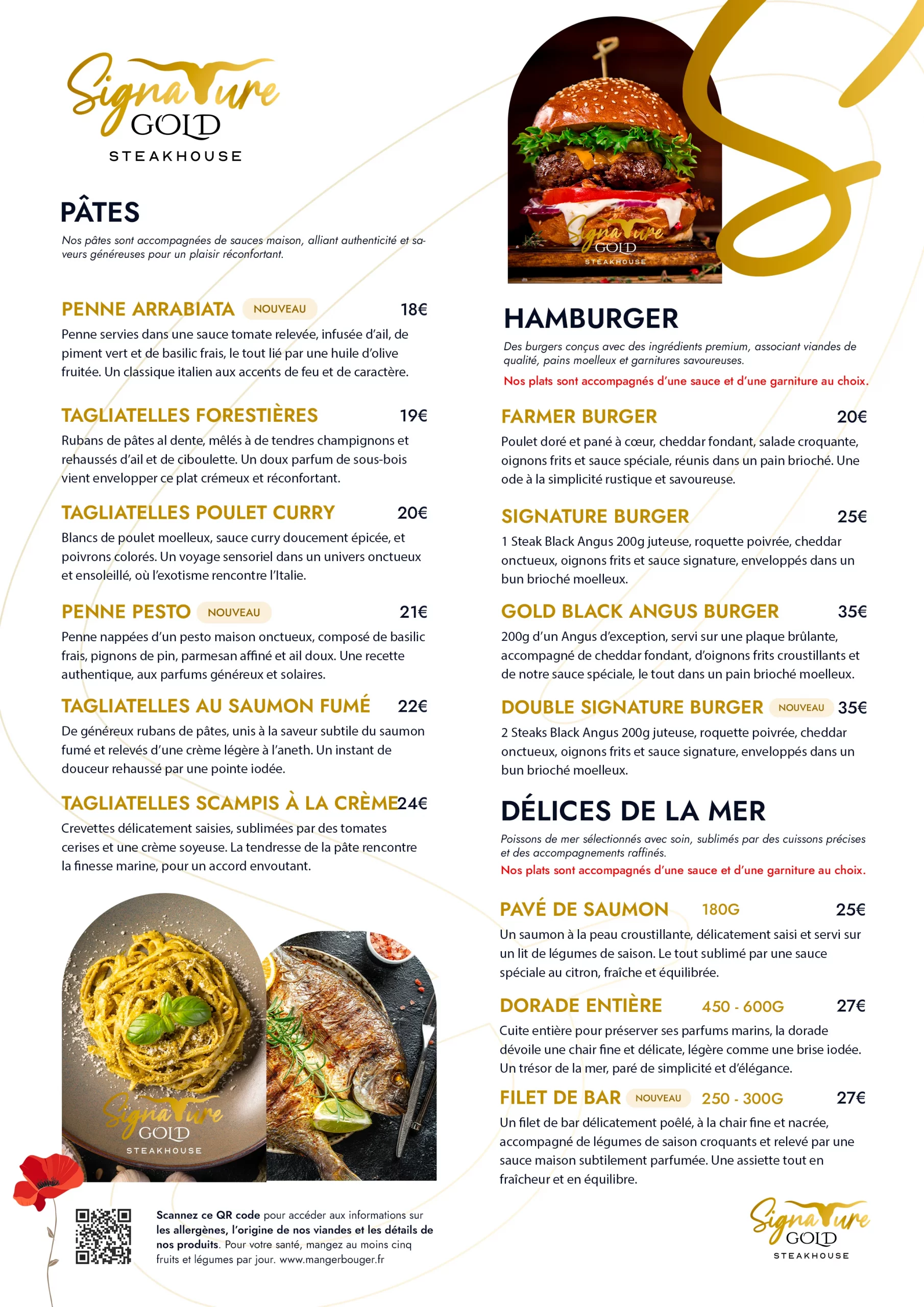 Nos burgers signature sont le parfait équilibre entre tradition et modernité, avec des ingrédients premium et des recettes audacieuses. Des pains moelleux, des steaks juteux et des garnitures raffinées, pour une expérience gourmande où chaque bouchée est une révélation.